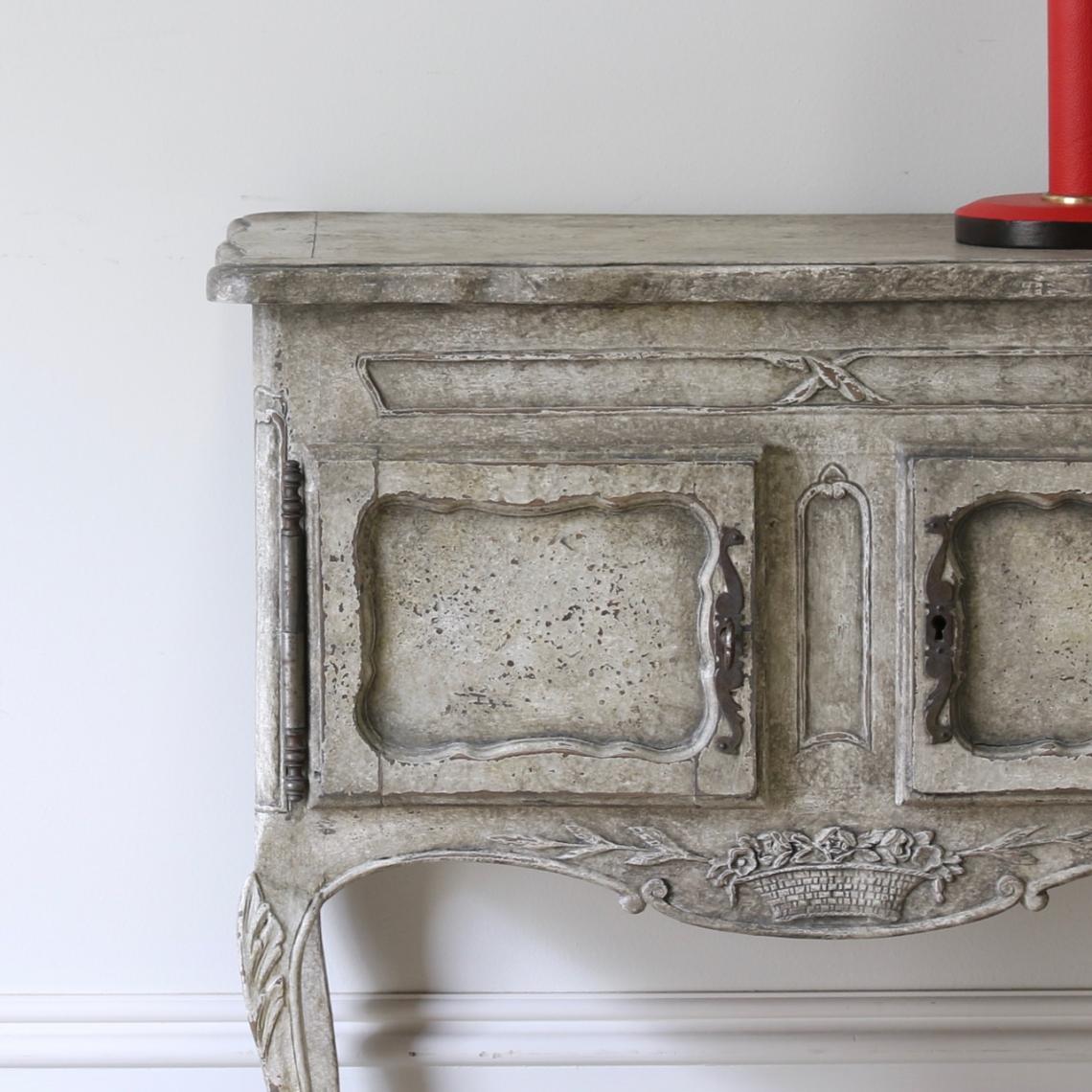 I purchased this cupboard in Brittany, France. Made from oak, it is built in the Louis XlV manner and finished in grey gesso.