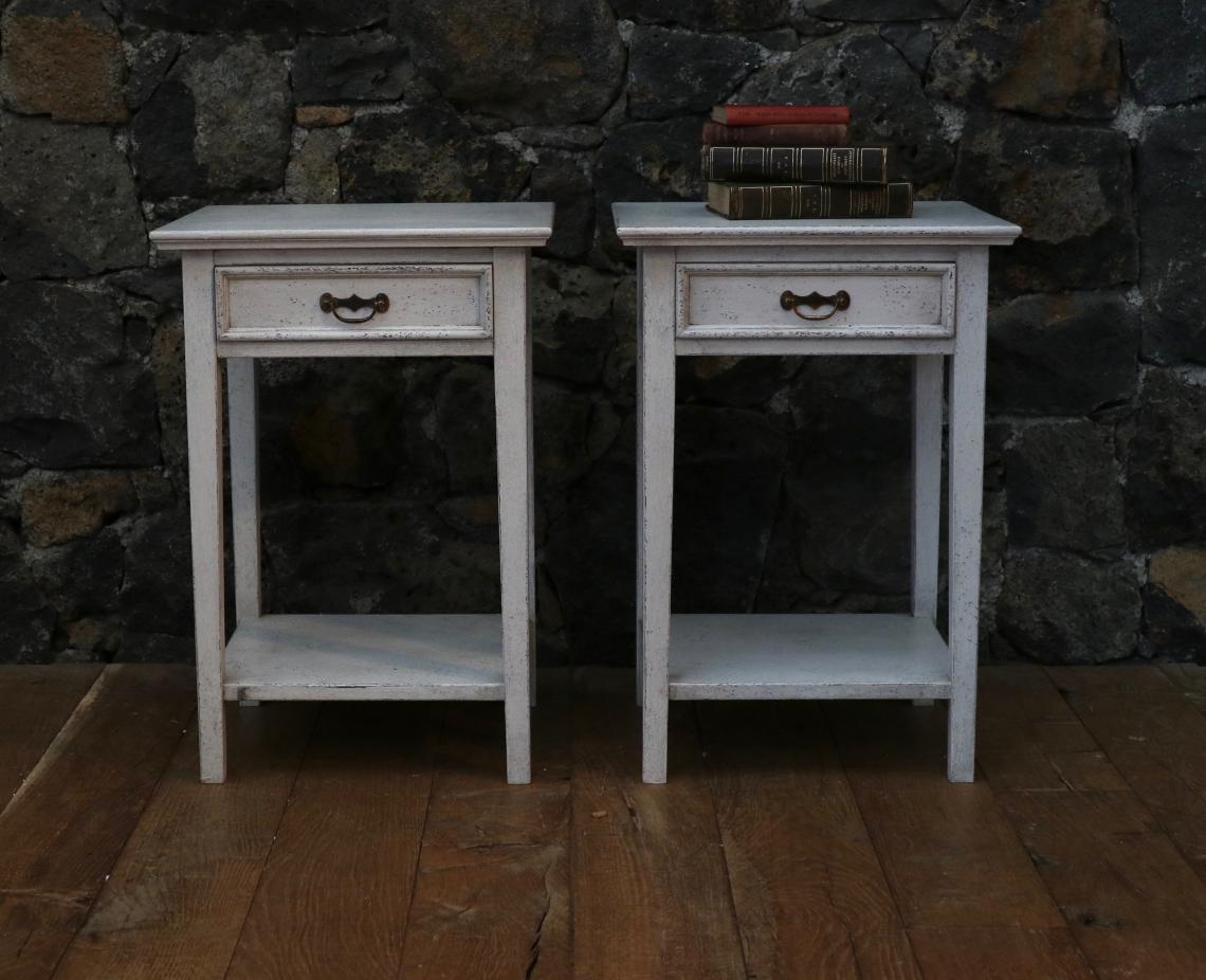 Another pair of our in-house bedside cabinets. This time they are finished in Gustavian white over a dark undercoat, with our glazed finish.