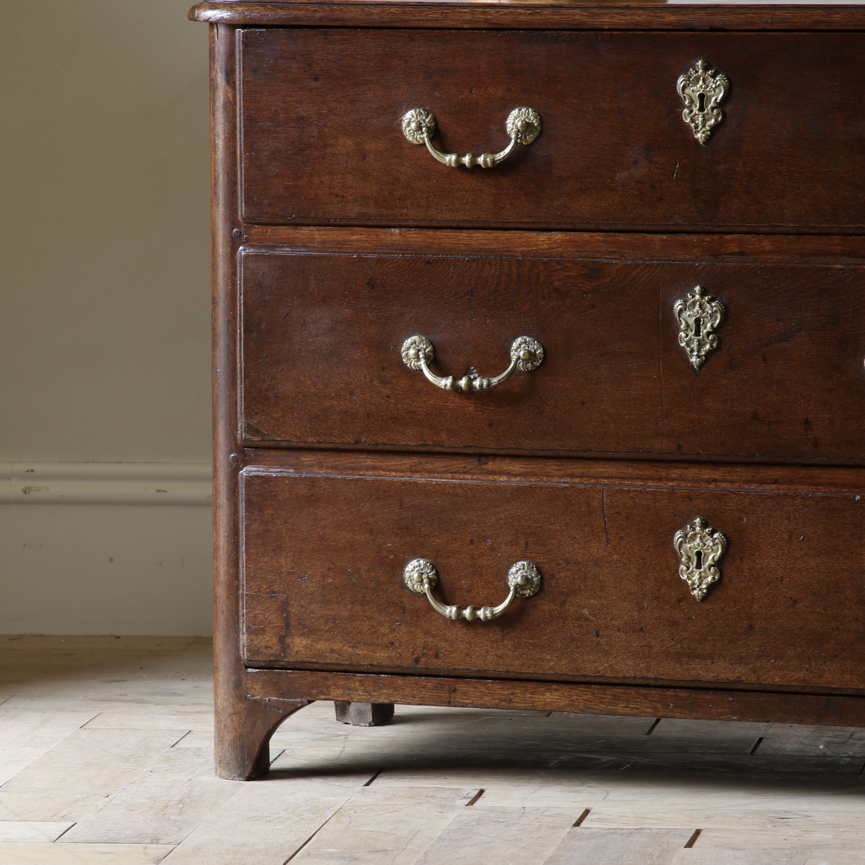 This is a very old and heavy French oak commode with three large drawers. For a commode of this age, the colour is exceptional.