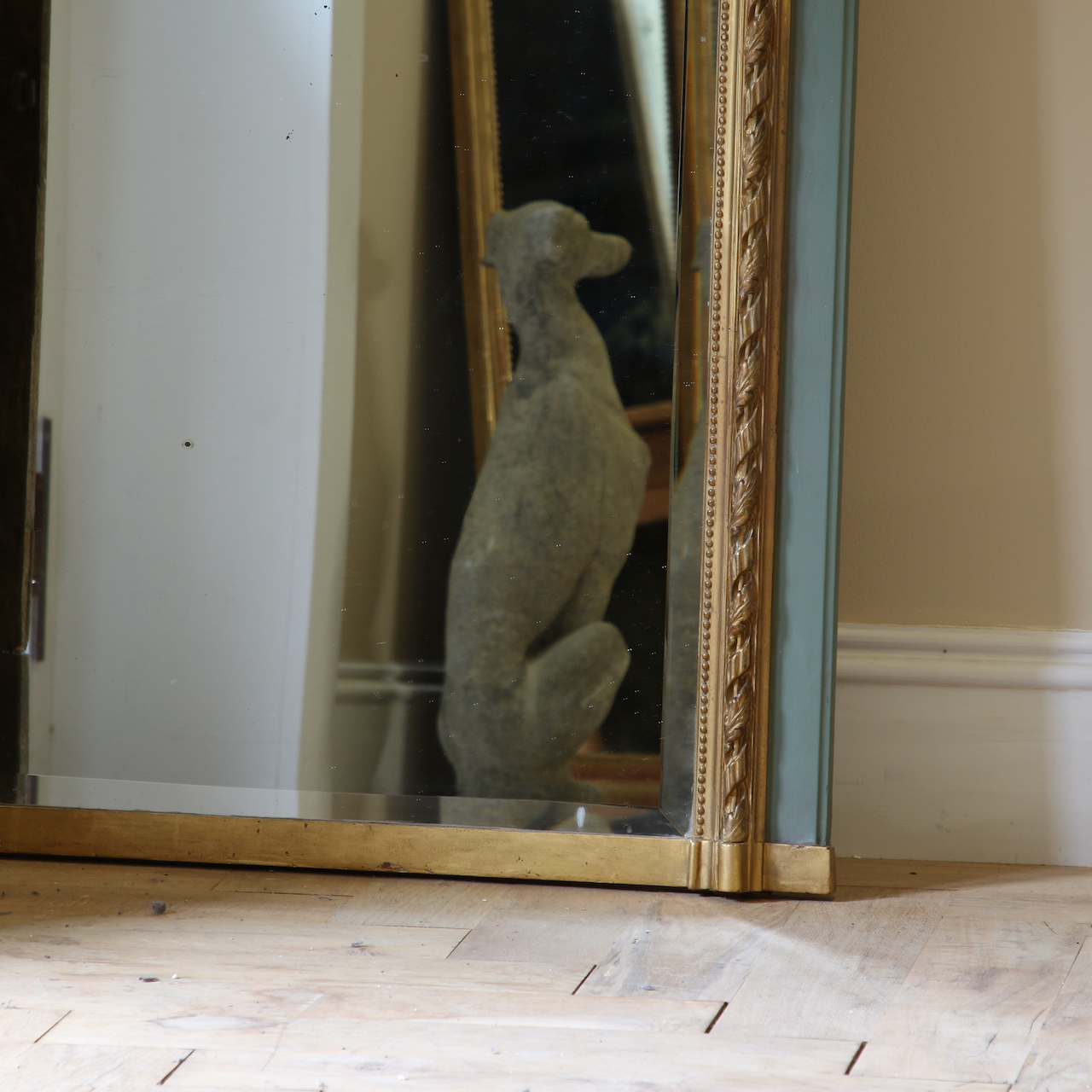 We all love the green field on this gilded Trumeau mirror with its bevelled mercury glass.