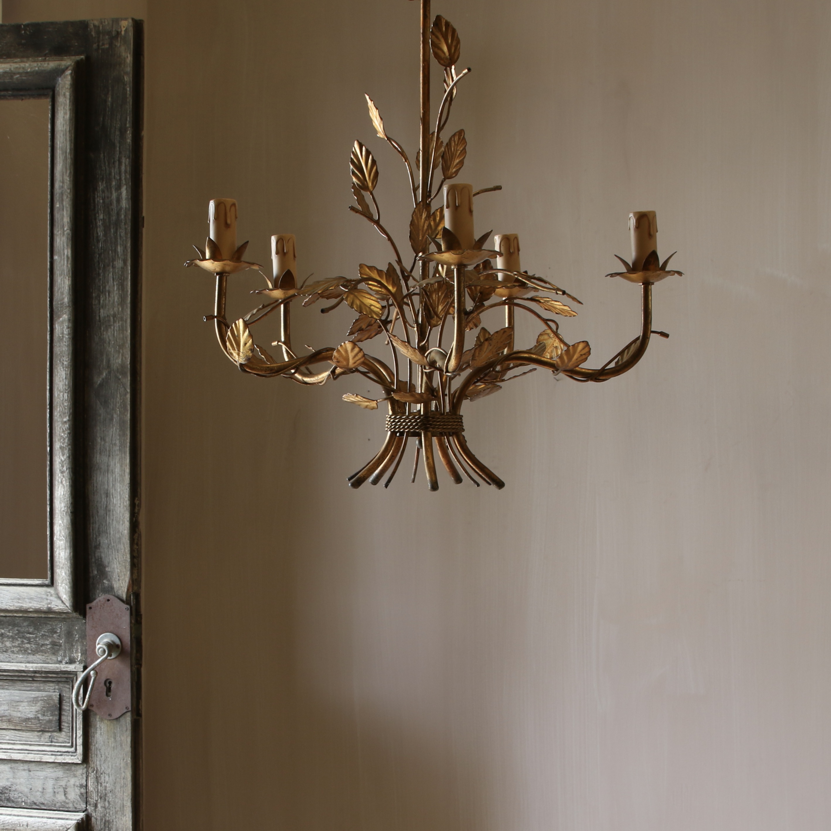 This attractive laurel leaf chandelier dates from the 1960s. Replete with six lights and gilded, it has been rewired to AU/NZ standards.