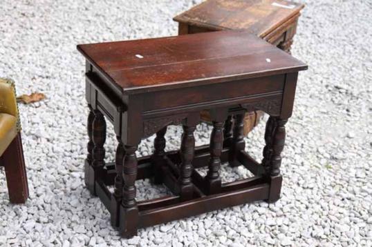 A 1920's oak unrestored nest of three tables currently being re-polished.