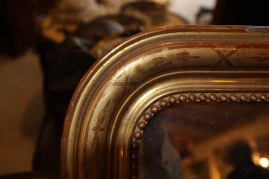 A lovely original engraved water gilded Louis Philippe mirror with inner beading.