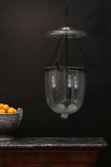 克什米尔切割钟型玻璃灯罩提灯-这些灯通常可以在英国乔治国王时期的房子中见到,它们通常被误认为来自英国。