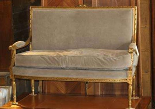 A fine Louis XV gold gilt, two seater French Couch with rope detail on the frame. Currently covered in grey fabric.