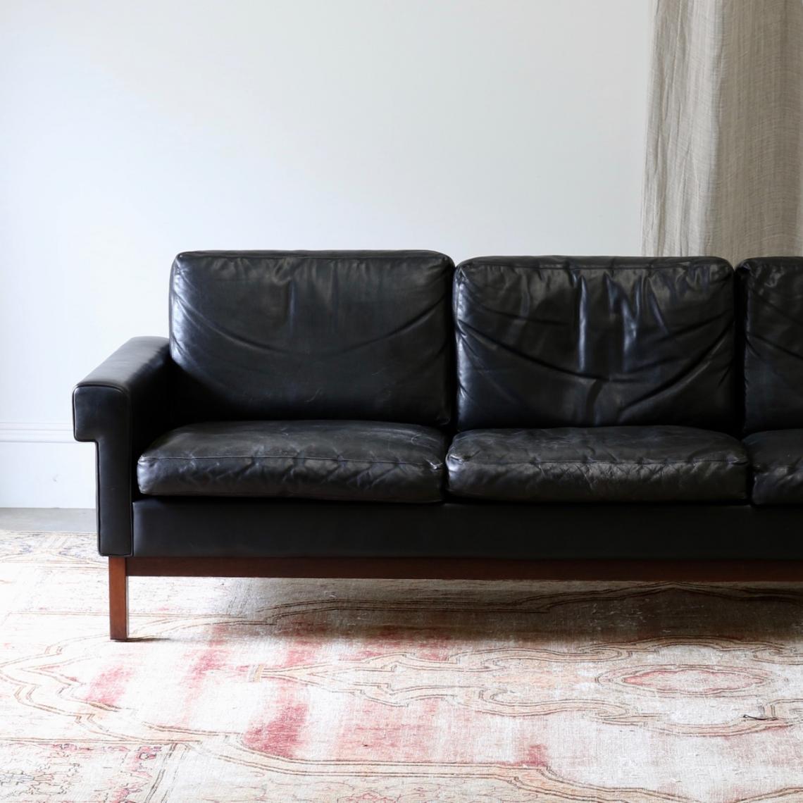 Purchased in Sweden, a mid-century armchair upholstered in quality leather. From the late 1950s, this was the original IKEA when they made quality stuff and before they went into mass production.